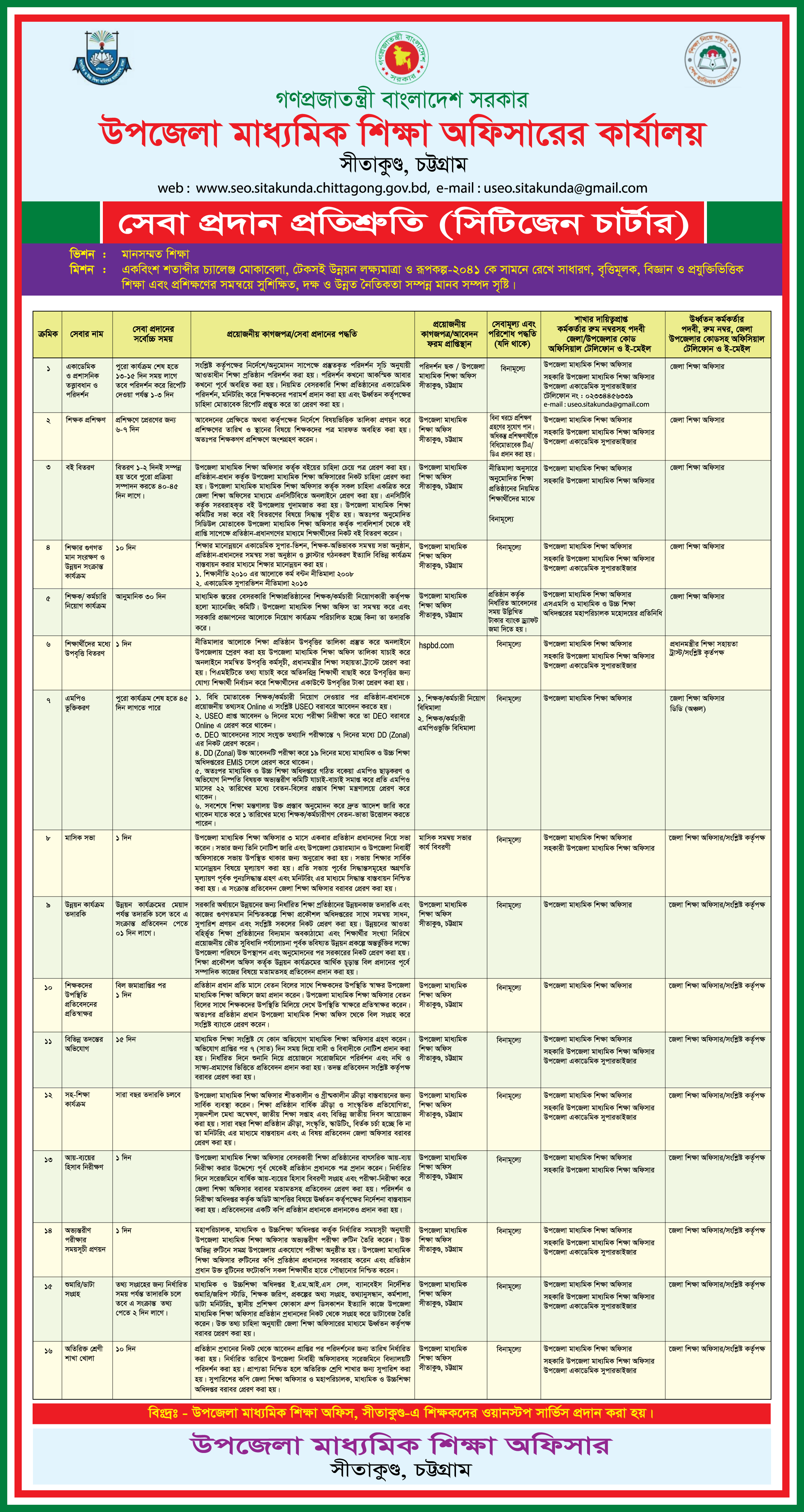 উপজেলা মাধ্যমিক শিক্ষা অফিস, সীতাকুণ্ড, চট্টগ্রামের সিটিজেন চার্টার নিম্নে প্রদর্শিত হলো।